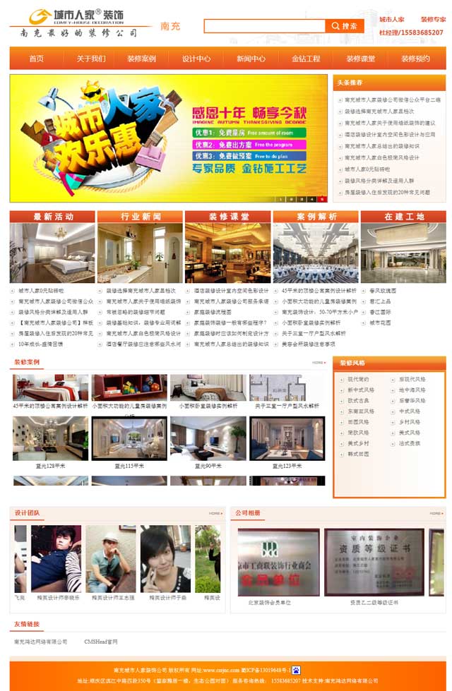 南充城市人家裝飾工程有限公司網站是我們公司在九月中旬建設完成的項目。南充城市人家裝飾工程有限公司網站顏色采用金黃色與白色的搭配、網站生動、個性化,有人一種溫馨、舒適的感覺。精彩的FLASH動畫設計,讓網站顯得更加有活力。南充鴻達網絡有限公司在簽定合同后的兩周內建設完成南充城市人家裝飾工程有限公司網站,得到該公司領導的認可,并表示非常滿意。